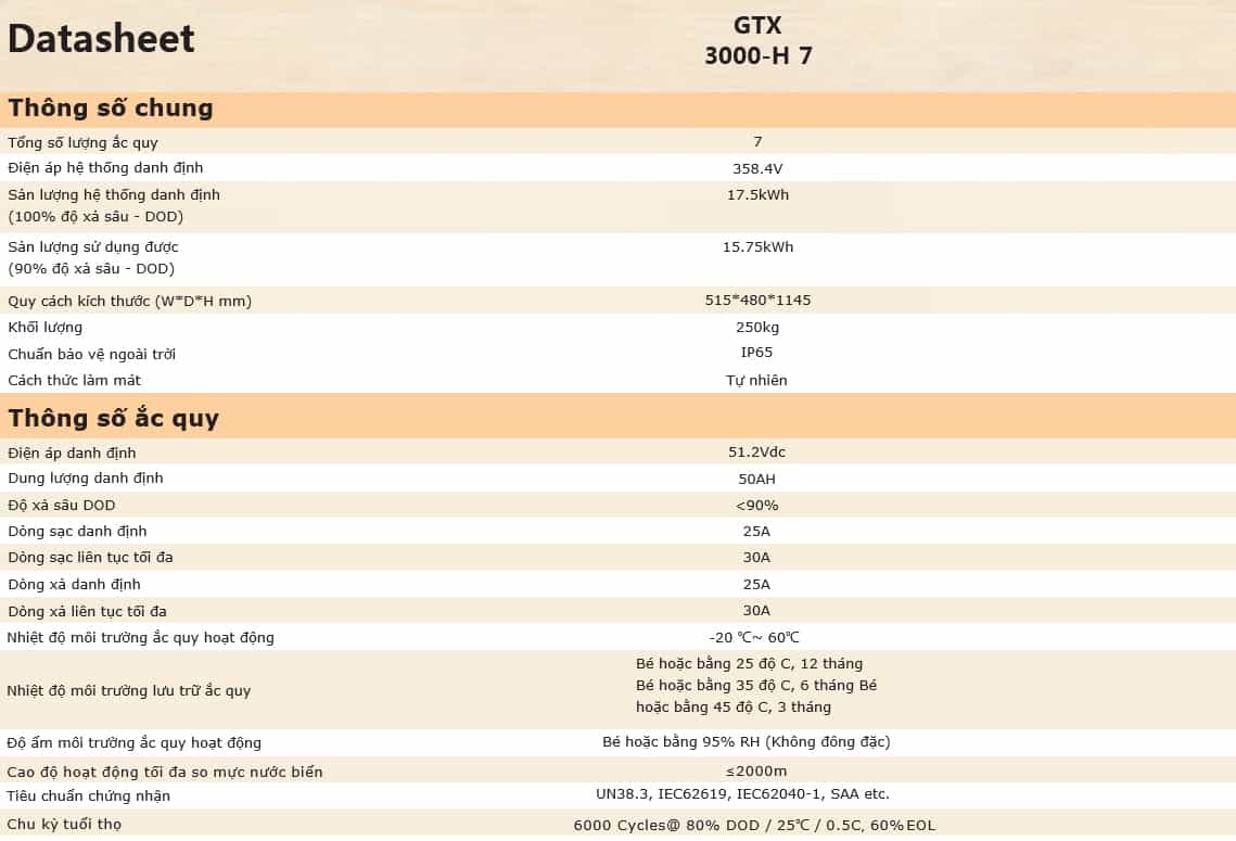 Thông số kỹ thuật Pin lưu trữ Lithium Sofar 17.5KW (GTX3000-H7) 3pha