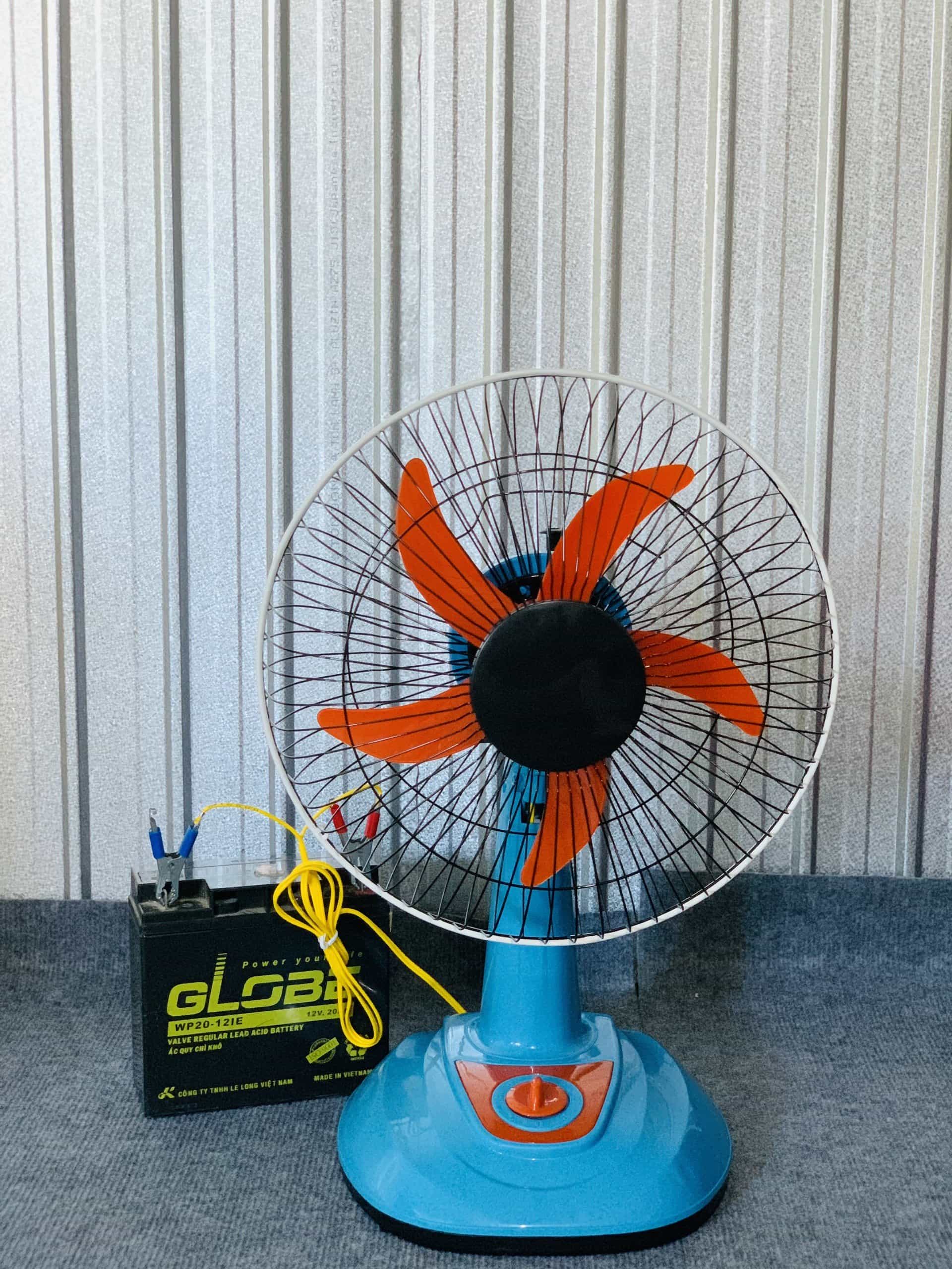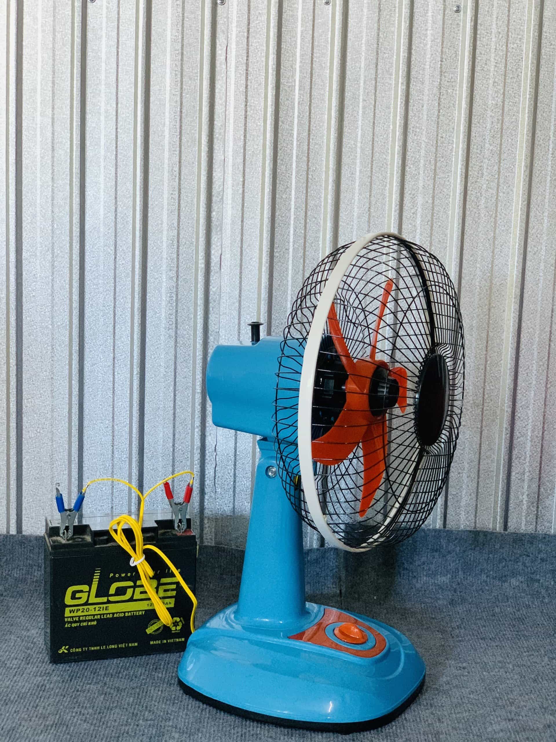 – Quạt điện DC 12V: dạng đứng như quạt thường 220V, dùng trực tiếp điện DC 12V từ bình ắc quy